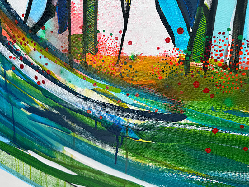 Euclid’s Arboreal Dream is an abstract landscape painting for sale by Atlanta-based artist Romildo Marranci. This immersive 6 ft × 5 ft mixed media canvas harmoniously blends geometric precision with organic, natural forms to evoke a tranquil forest scene. Bold intersecting lines frame soft arboreal patterns, creating visual rhythm and emotional depth. This is the second piece in a five‑work series exploring geometry meeting nature.